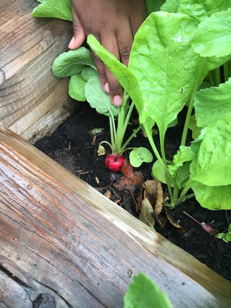When discussing their school garden and nature in their community, the children showed that they cared about the natural world and that it was of value to them. The children thought it was important for their school to have a garden: “It’s a really good thing to have a garden in the middle of the city.” They also shared a sense of pride in having a garden. To them, the school garden was “cool” and some children thought that students from other schools might be jealous of their school garden. Children also voiced that the garden cared for them by feeding them and providing oxygen for them to breathe. One child told us of feeling sadness when a tree was cut down. Several children spoke about caring for the garden, particularly as part of their membership in the school’s environmental club.